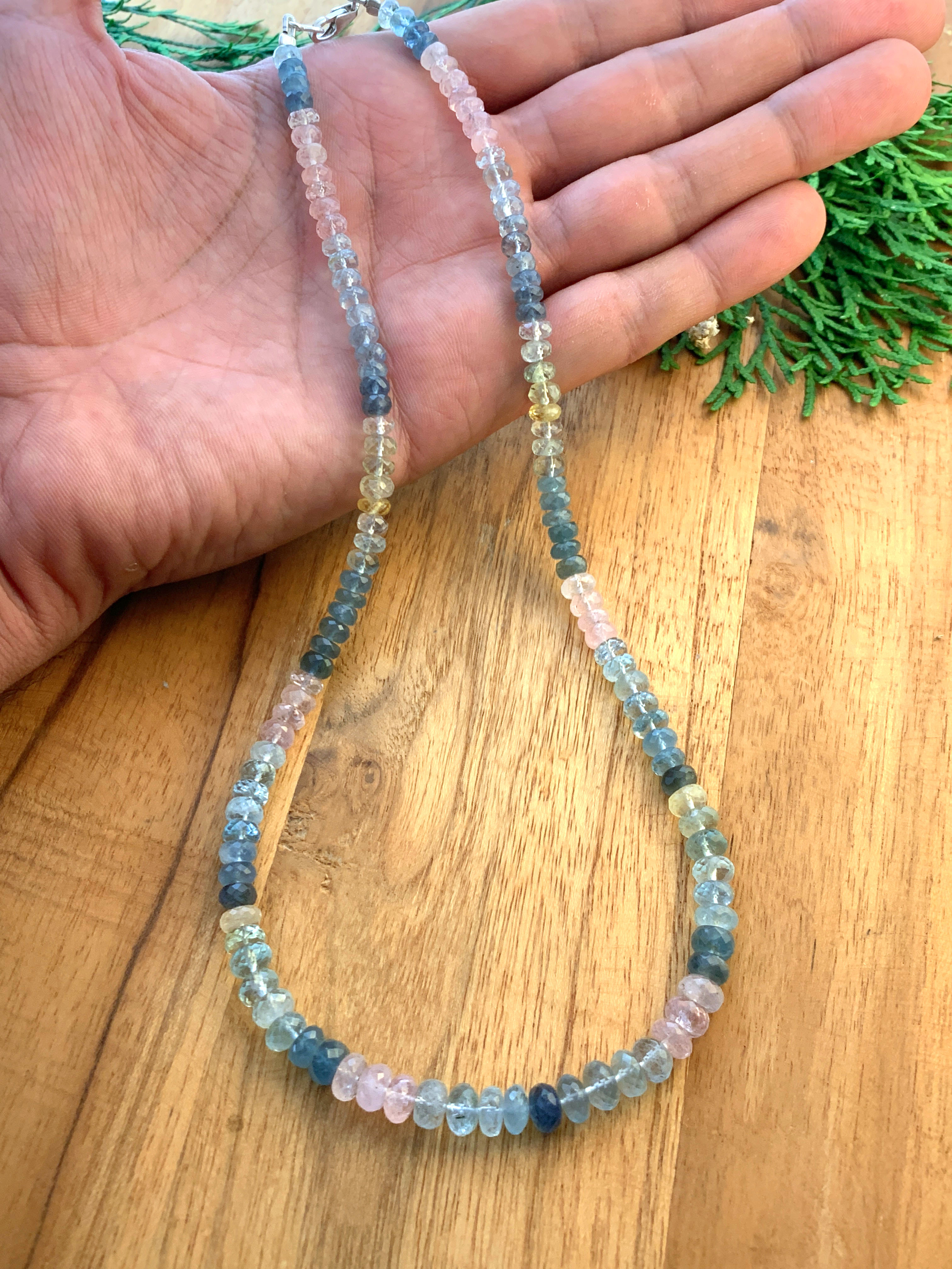 Natürliche facettierte Aquamarin Kette mit Verschluß aus 925er Silber