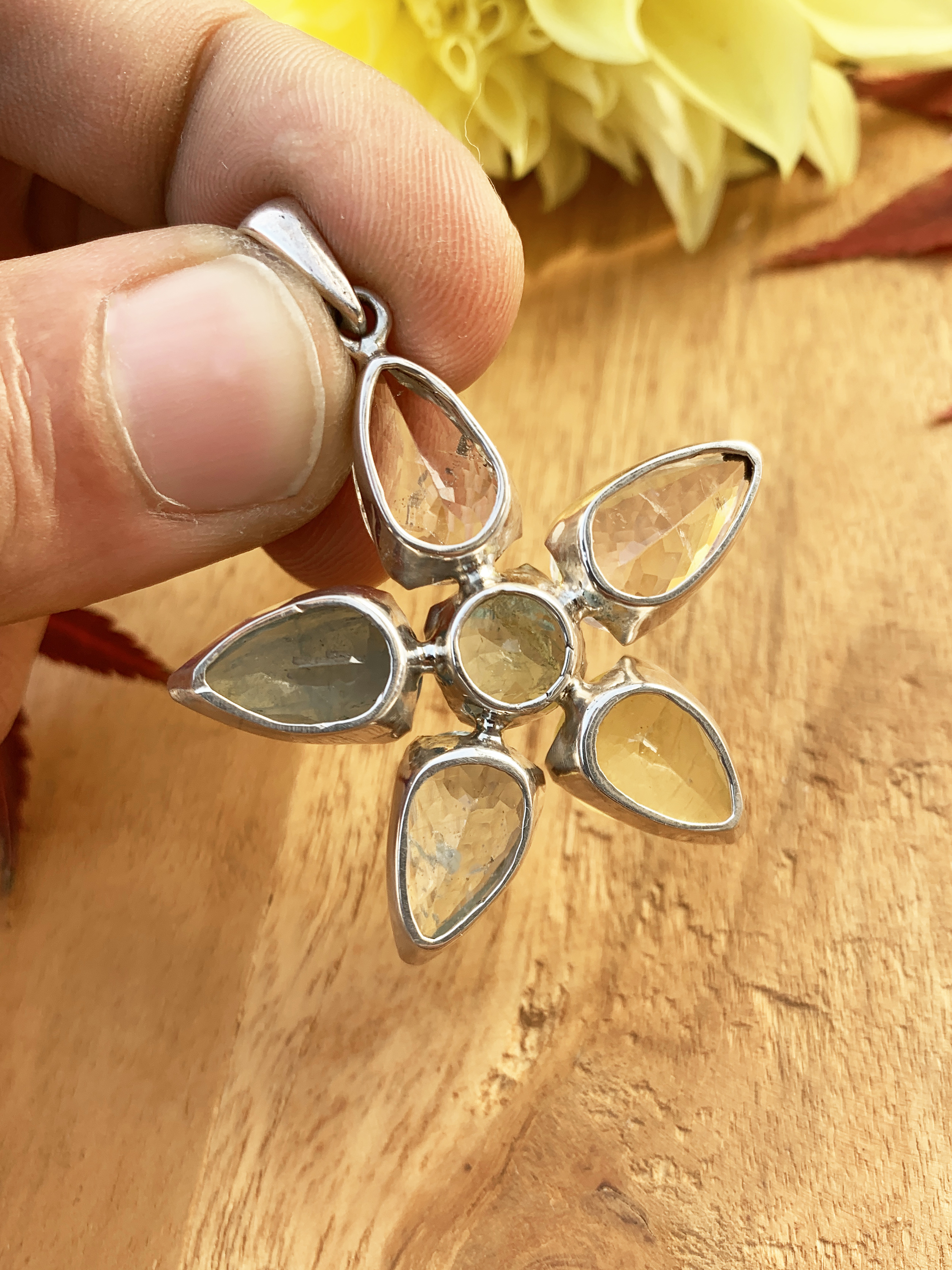 Multistone Anhänger gefasst in 925er Silber